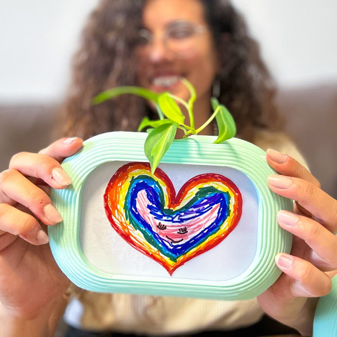 אני עובדת עם פלסטיק אקולוגי המופק מעמילן תירס, חומר בטוח, נעים וידידותי יותר לסביבה. הטקסטורה המודפסת מעניקה לכל פריט אופי חמים וייחודי, והעיצוב מדויק כך שכל חלק באמת עובד בשבילך – נוח לשימוש, יפה להצגה, ומוסיף טאצ׳ אישי לפינה שלך