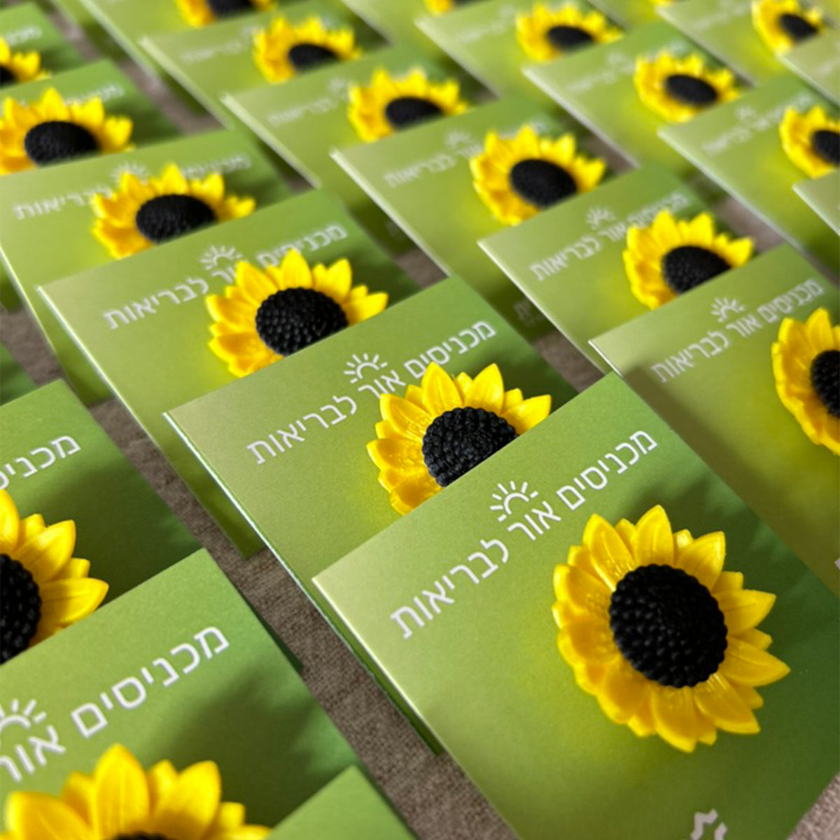 התוצאה? קולקציה בלעדית לארגון שלכם: החל מסיכות דש עדינות הנושאות מסר של תקווה, ועד לגביעי הוקרה פיסוליים ומרשימים לכנסים ולמצטיינים.