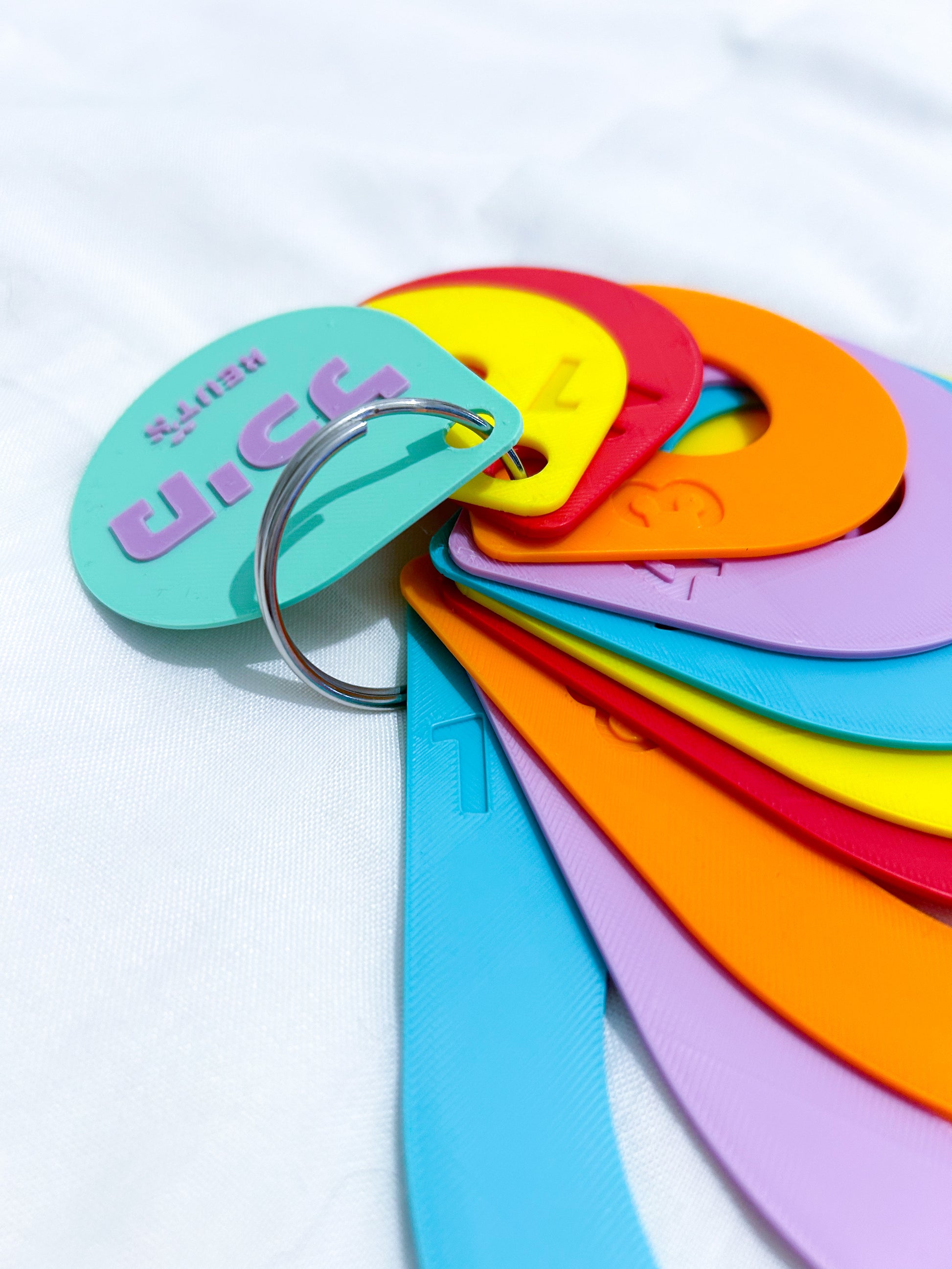 סט הטבעות מיוצר בהדפסת תלת-מימד מפלסטיק אקולוגי על בסיס עמילן תירס, מה שהופך אותו לידידותי לסביבה ולמתכלה. הטבעות עמידות, ניידות, ומתאימות לשימוש חוזר – מושלם לשימוש בכיתות, קליניקות ולמידה עצמאית. בנוסף, יש אפשרות להתאמה אישית עם הוספת שם, לוגו או תאריך לפי הצורך.