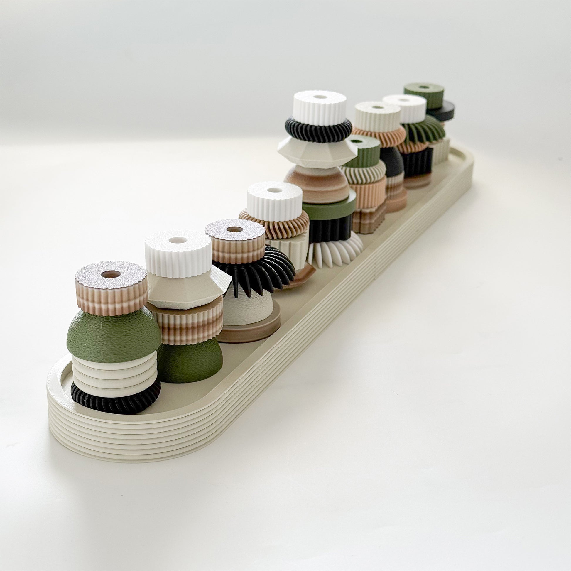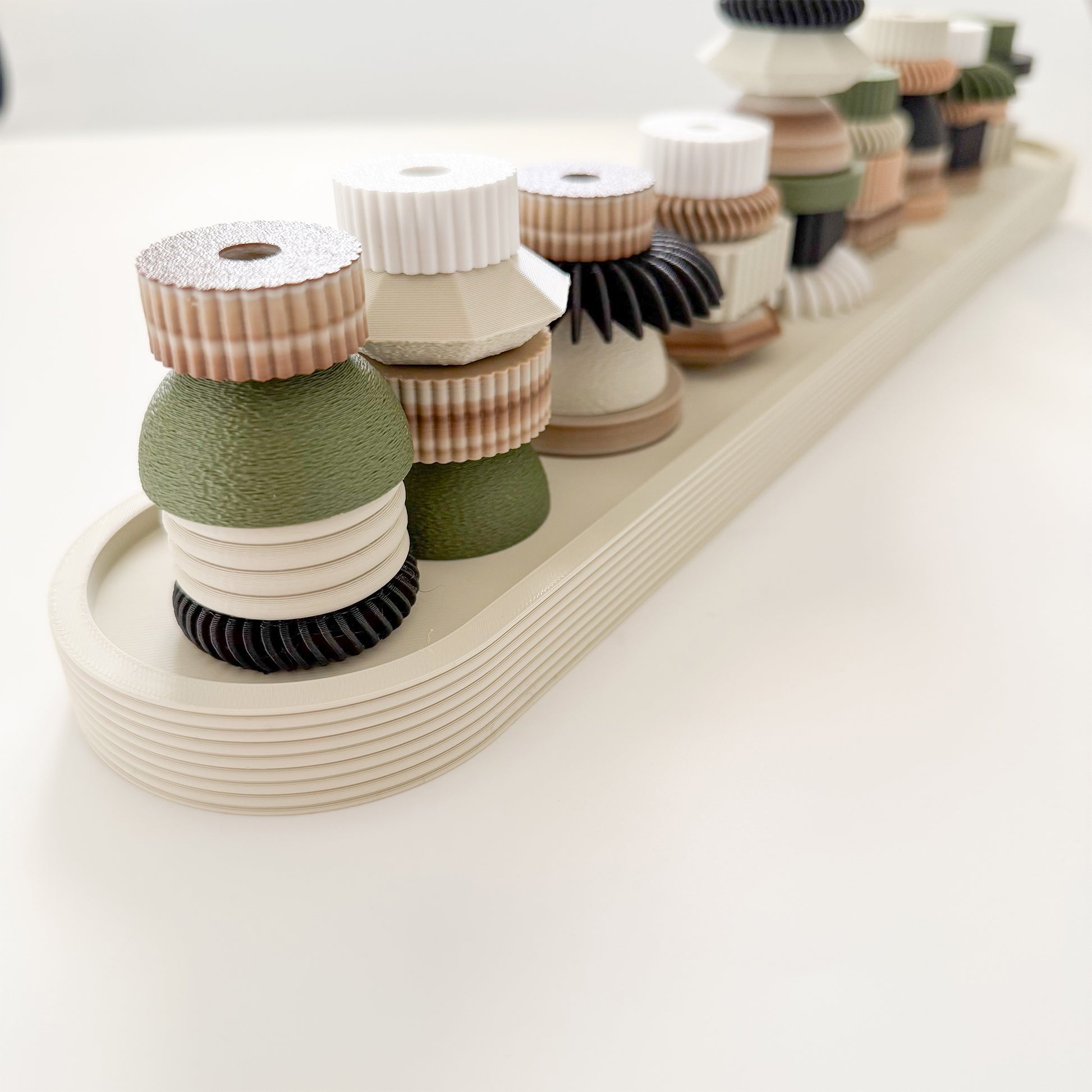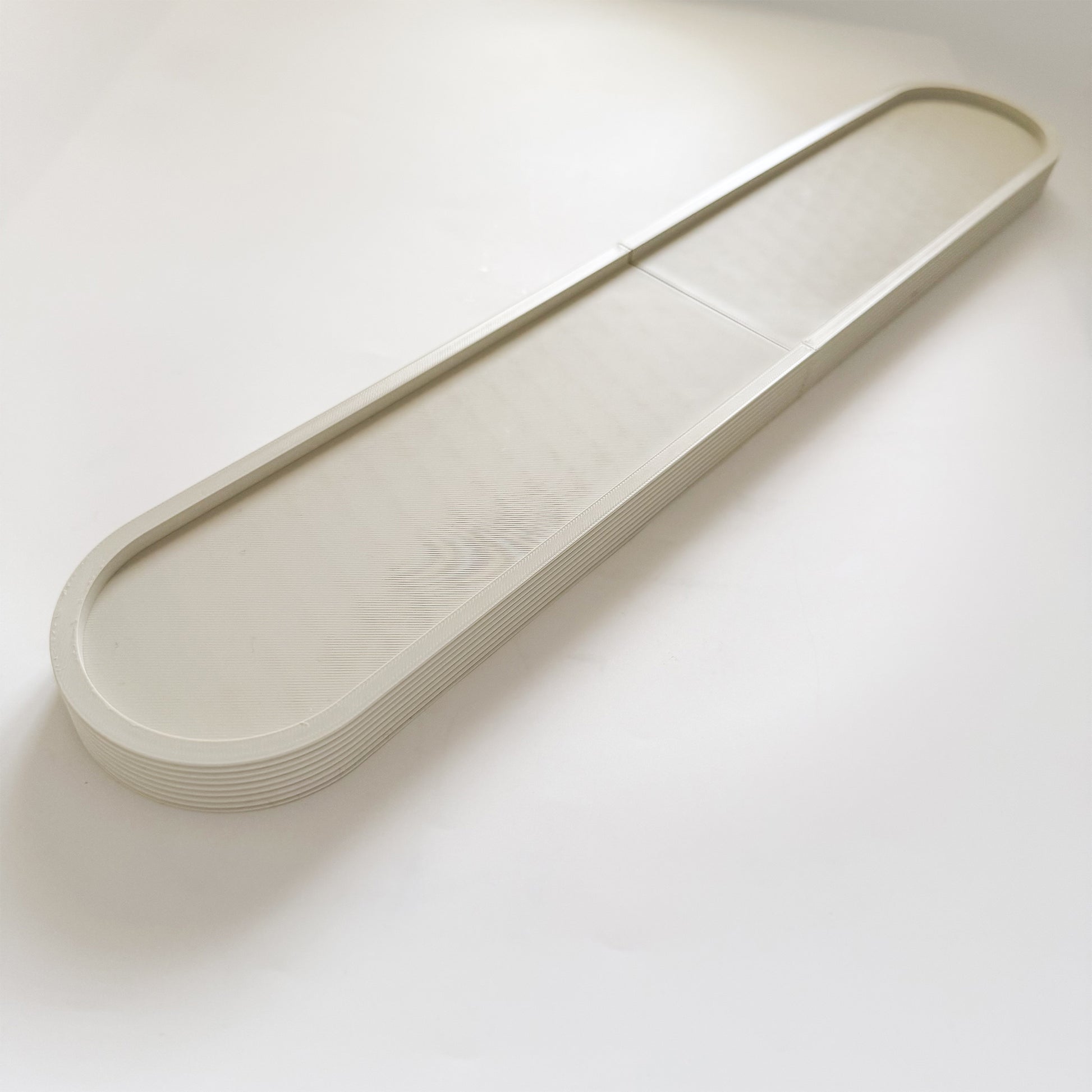 מגש תצוגה גדול ומעוצב שמחמיא לחנוכייה המודולרית ויוצר מראה נקי ומסודר.