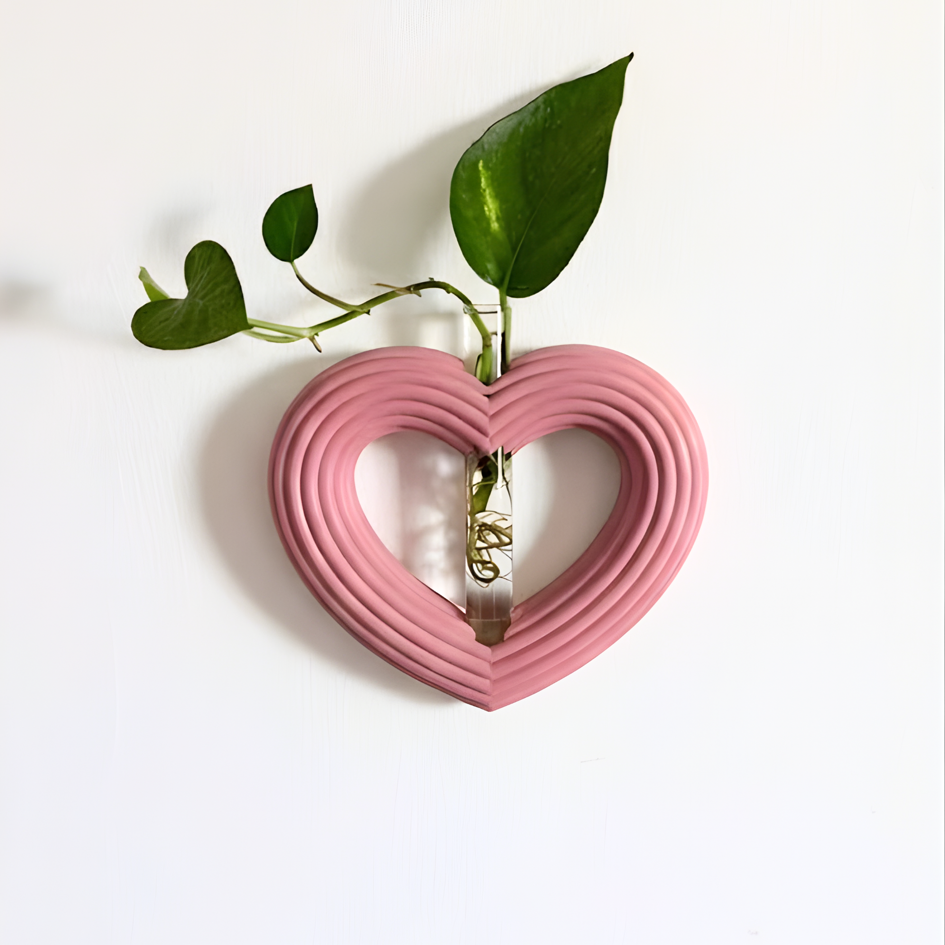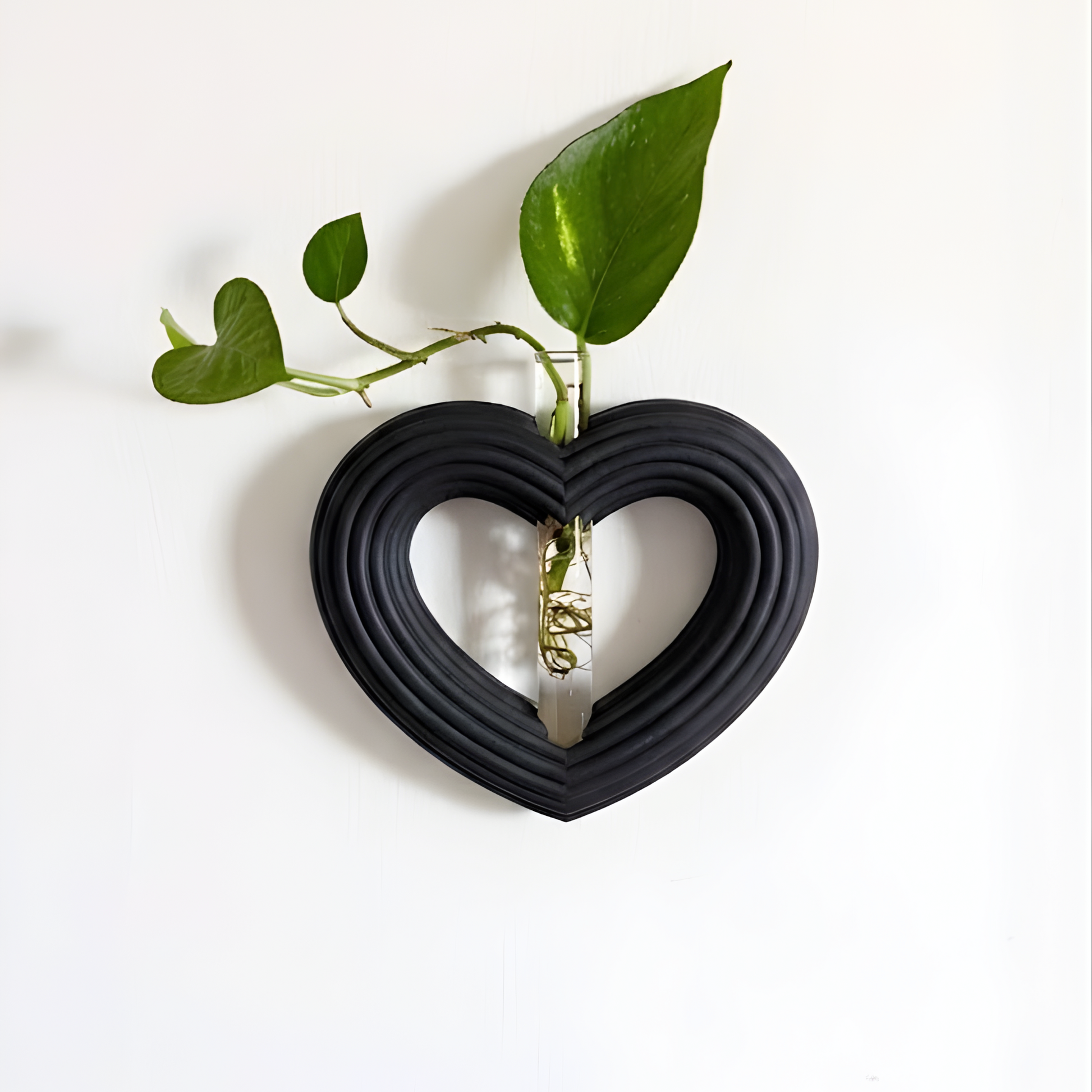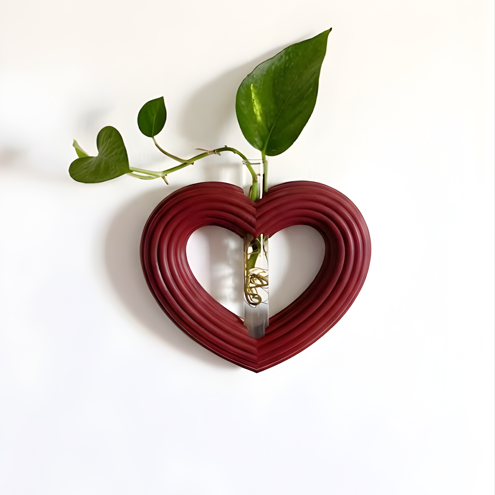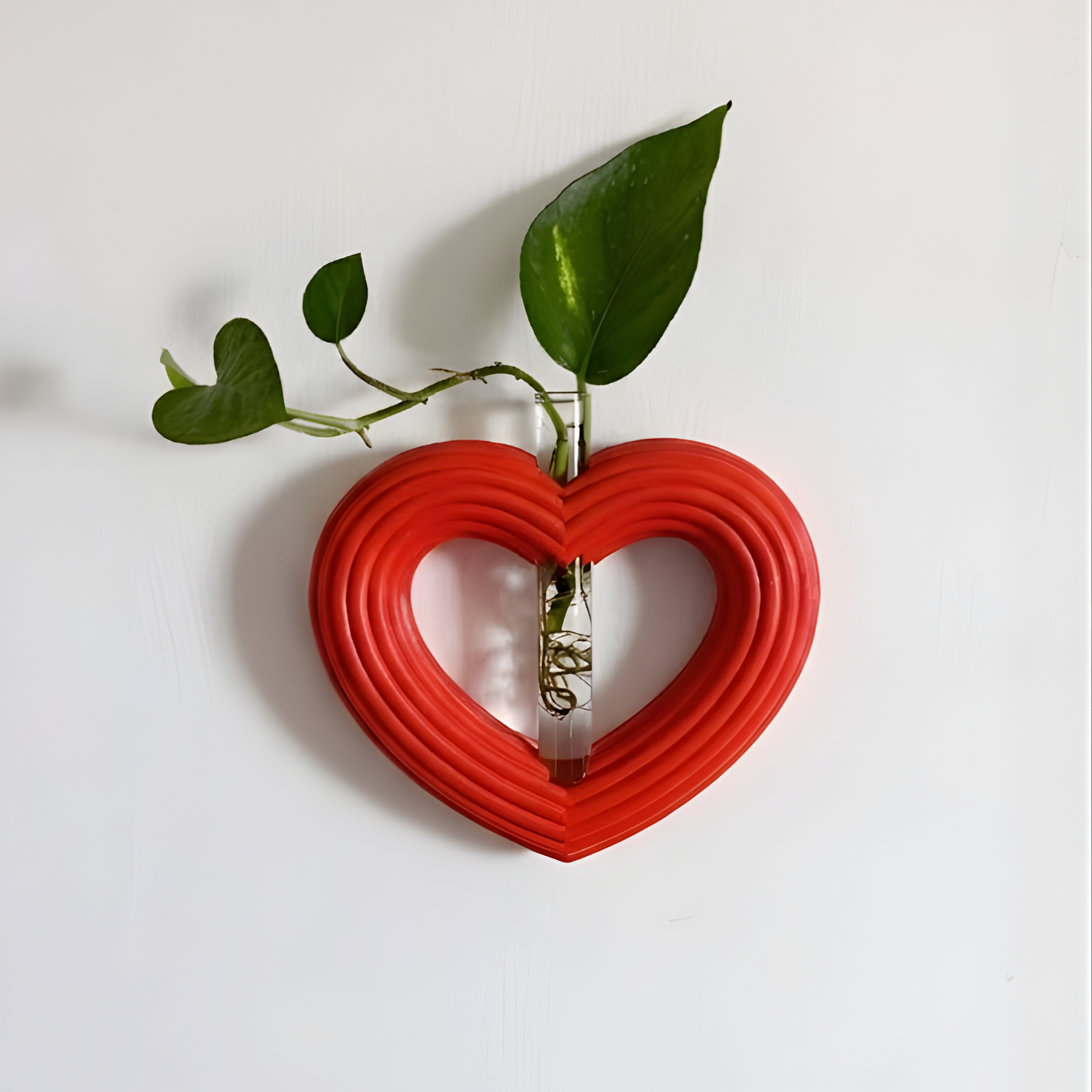 מתקן ייחורים בעיצוב לב גדול שמכניס אהבה וצמיחה לכל קיר.