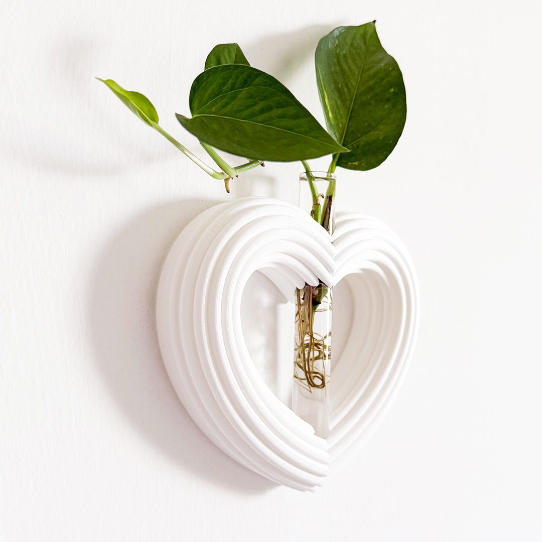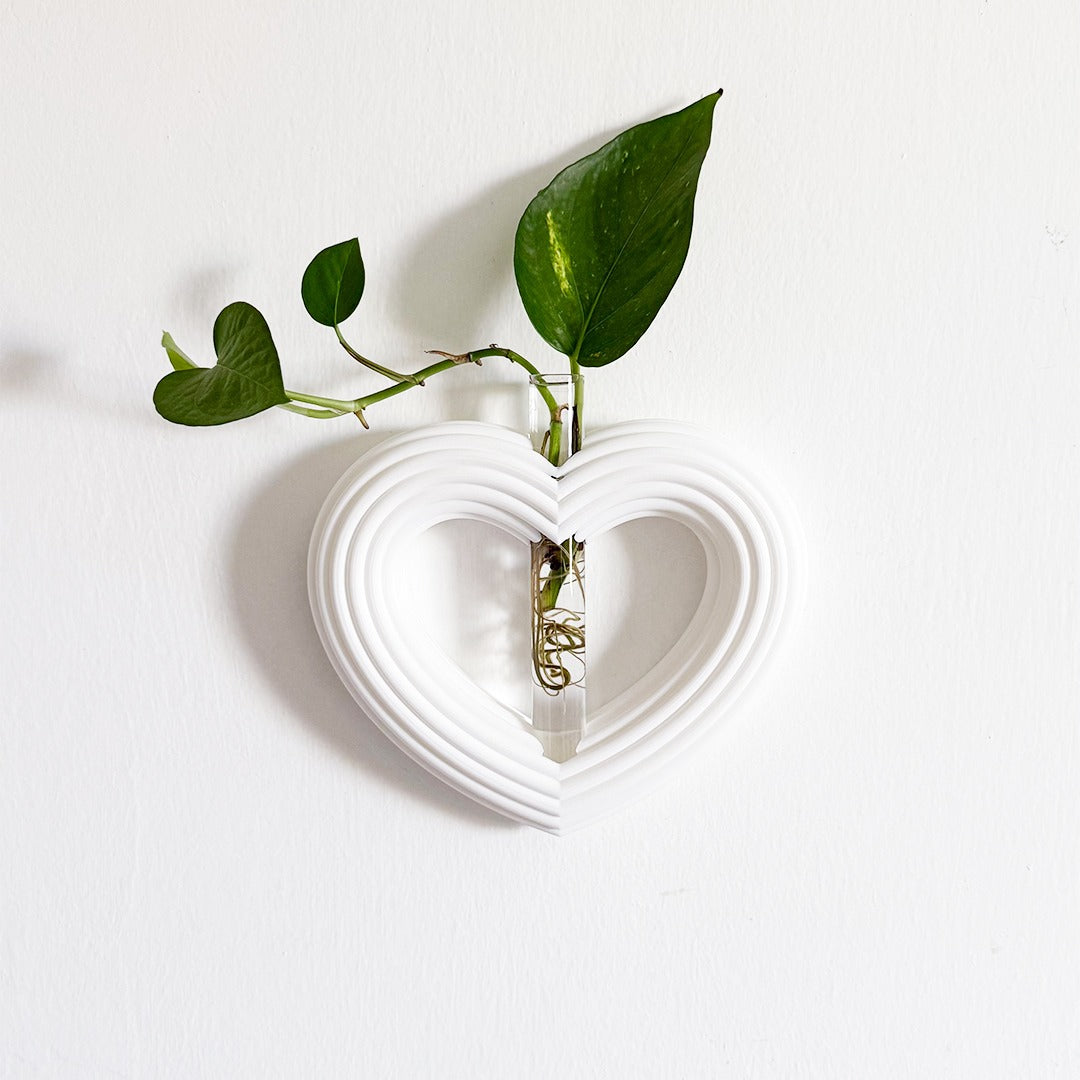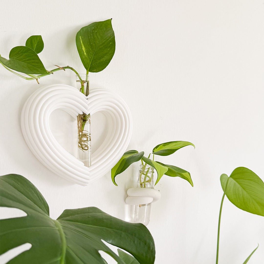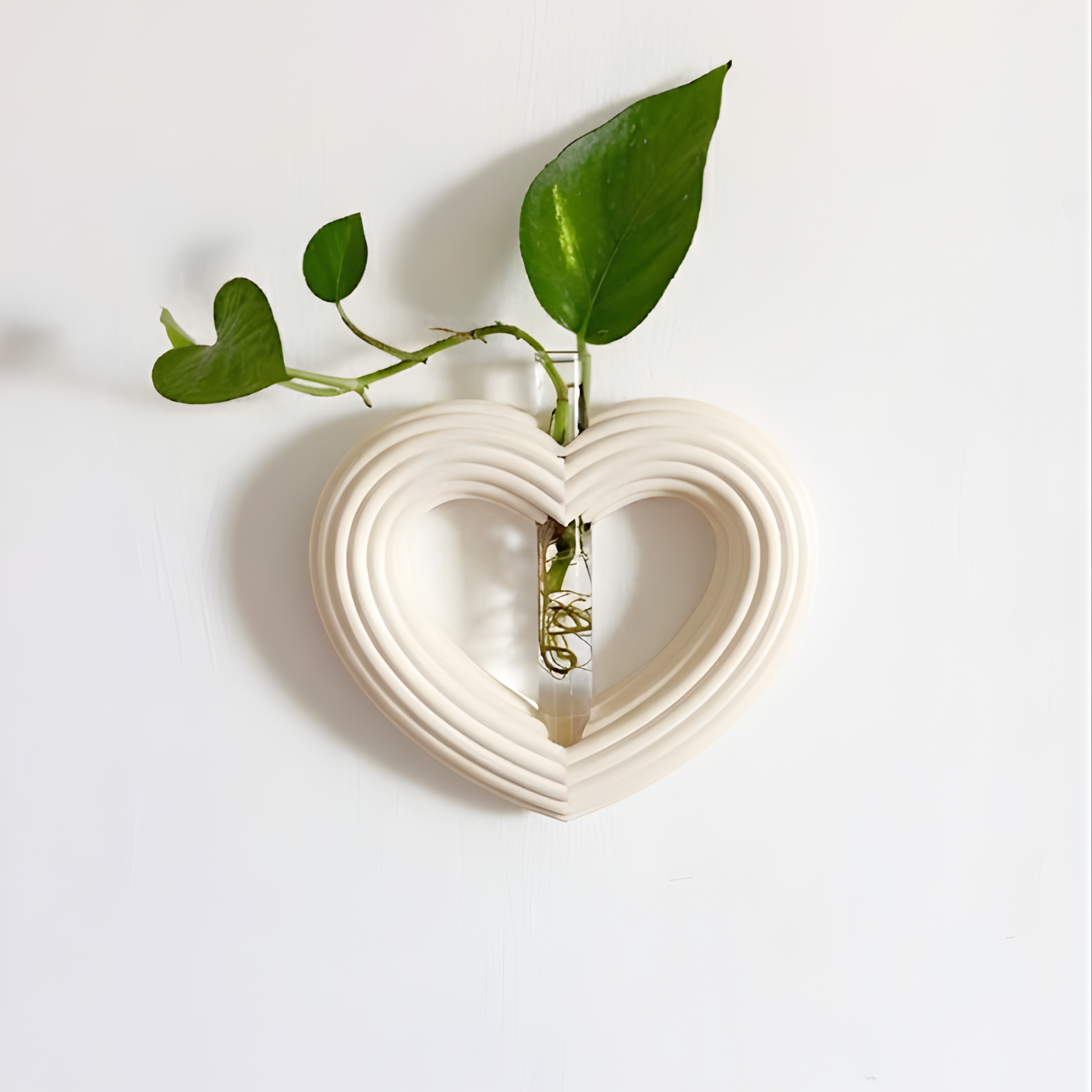 מתקן ייחורים בעיצוב לב גדול שמכניס אהבה וצמיחה לכל קיר.