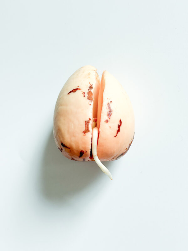 גרעין אבוקדו מונבט, בריא וחזק, שגדל באהבה אצלנו בבית. כל גרעין כבר התחיל להוציא שורשים ונמצא בשלב שמוכן להמשיך לגדול – בין אם בכוס מים או באדמה.