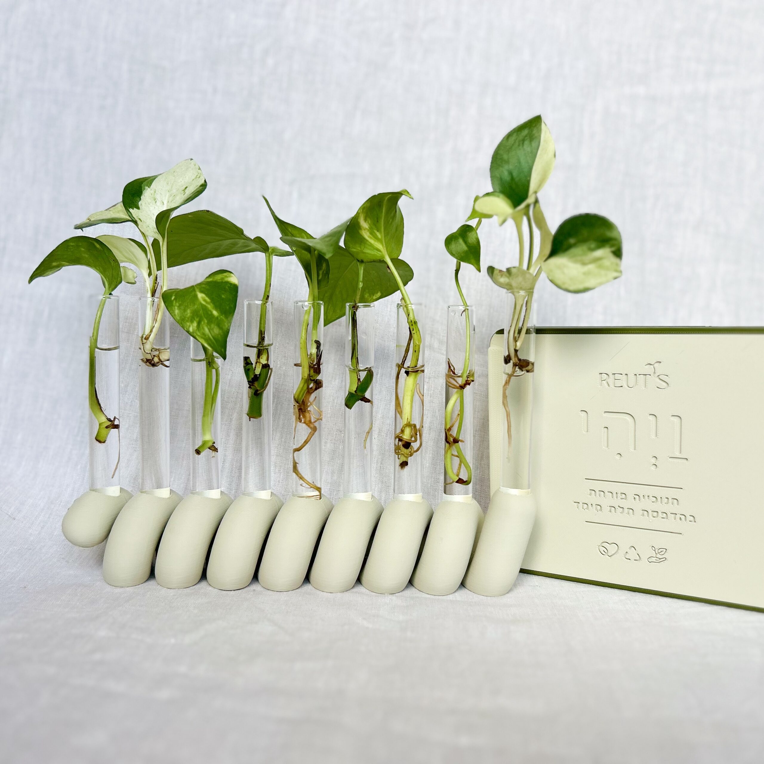 מתקן ייחורים בהדפסת תלת מימד העשוי מפלסטיק המופק מעמילן תירס הנקרא PLA.