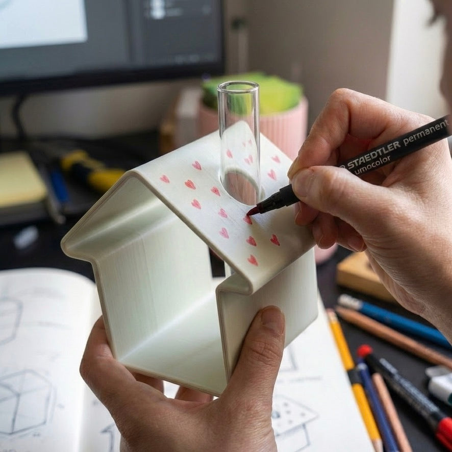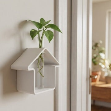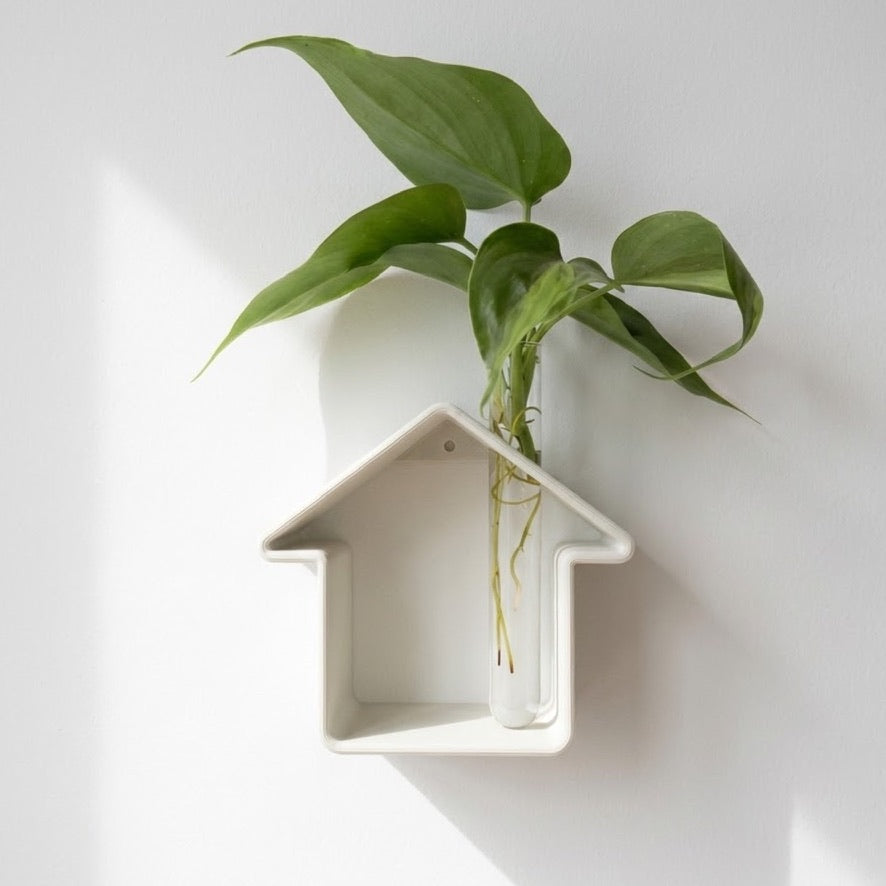 מתקן ייחורים בצורת בית שאפשר לתלות על הקיר עם מסמר או להניח על שולחן ומדף.