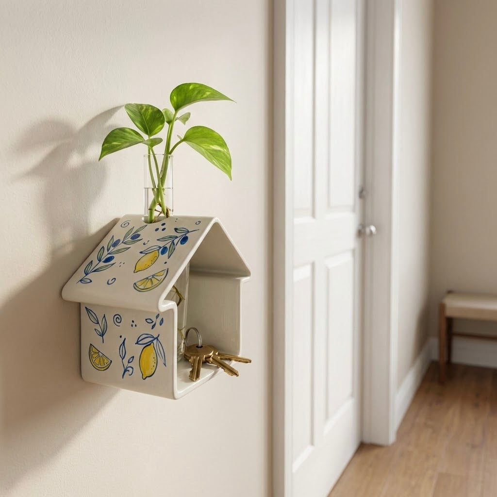 כולל מבחנת זכוכית ומתאים לייחור צמחים, אחסון מפתחות קטנים ולשימוש יומיומי בכניסה לבית או בפינת עבודה.